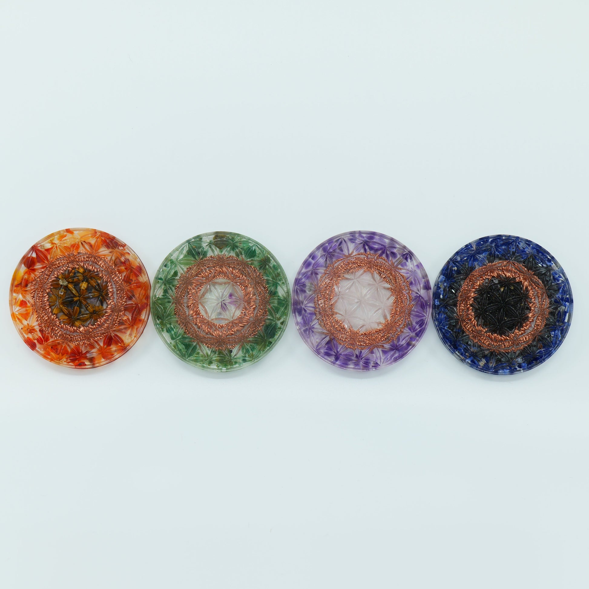 Each Cosmo Coaster is one-of-a-kind and handmade, sealed in crystal-clear resin to preserve both beauty and vibration, making every piece as functional as it is luxurious.