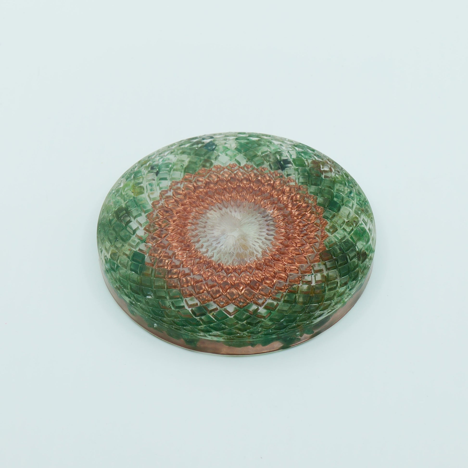 It looks truly beautiful — I can see the fine attention to detail that went into crafting this small orgonite. I keep it in my car, and it adds such a nice touch. I often hold it in my hands, and it feels wonderful. Exceptional craftsmanship.