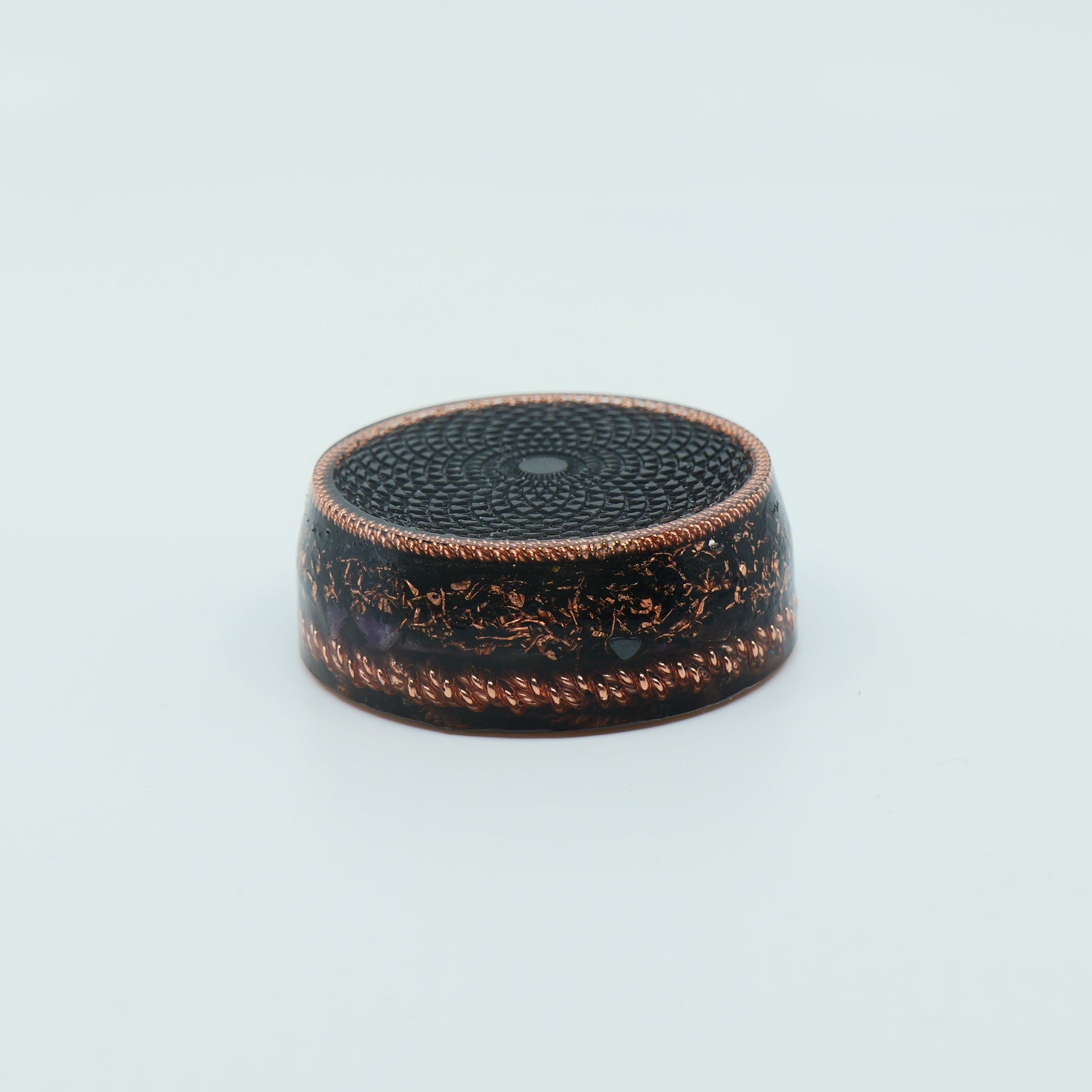 Handcrafted with precision, this Torus orgonite from the Cosmo Elite Collection is a master-crafted EMF protection device designed to neutralize harmful radiation, stabilize energy fields, and restore balance to your environment.