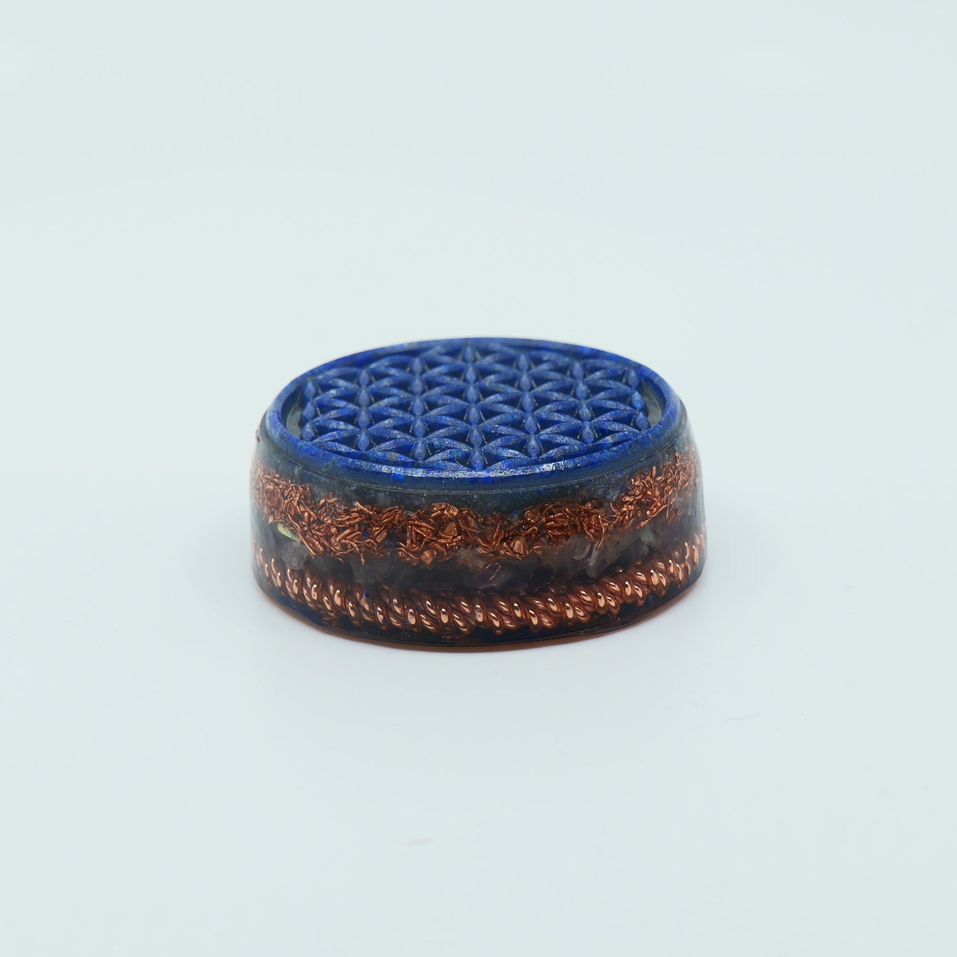 Handcrafted with care, this Flower of Life orgonite from the Cosmo Elite Collection is a high-vibration design crafted to awaken intuition, expand awareness, and accelerate spiritual transformation.
