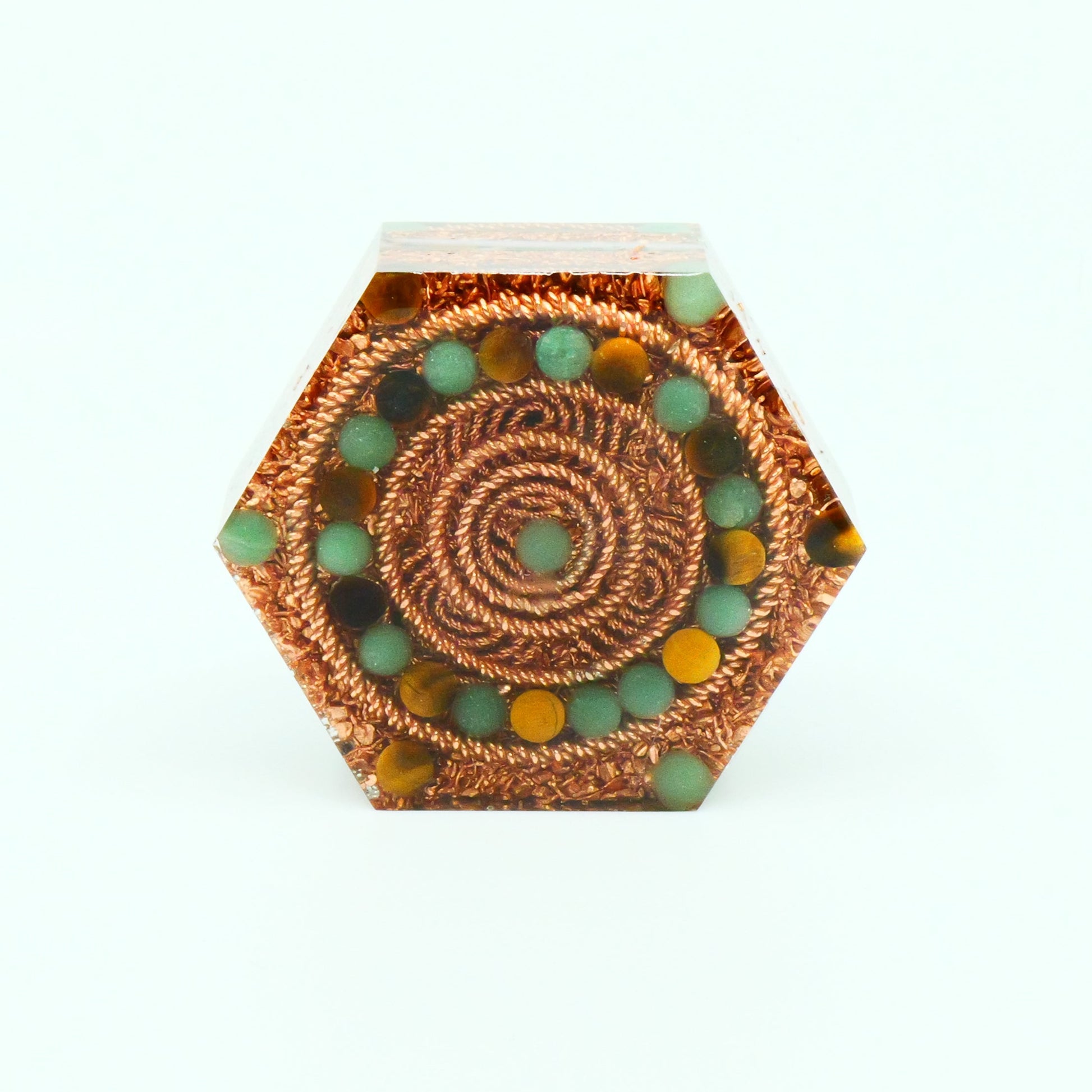 ✧ Sacred Geometry: Hexagon design, infused with 6 Double Tensor Rings and a Double Tensor Triskelion coil using Empowerment measurement for enhanced energetic flow