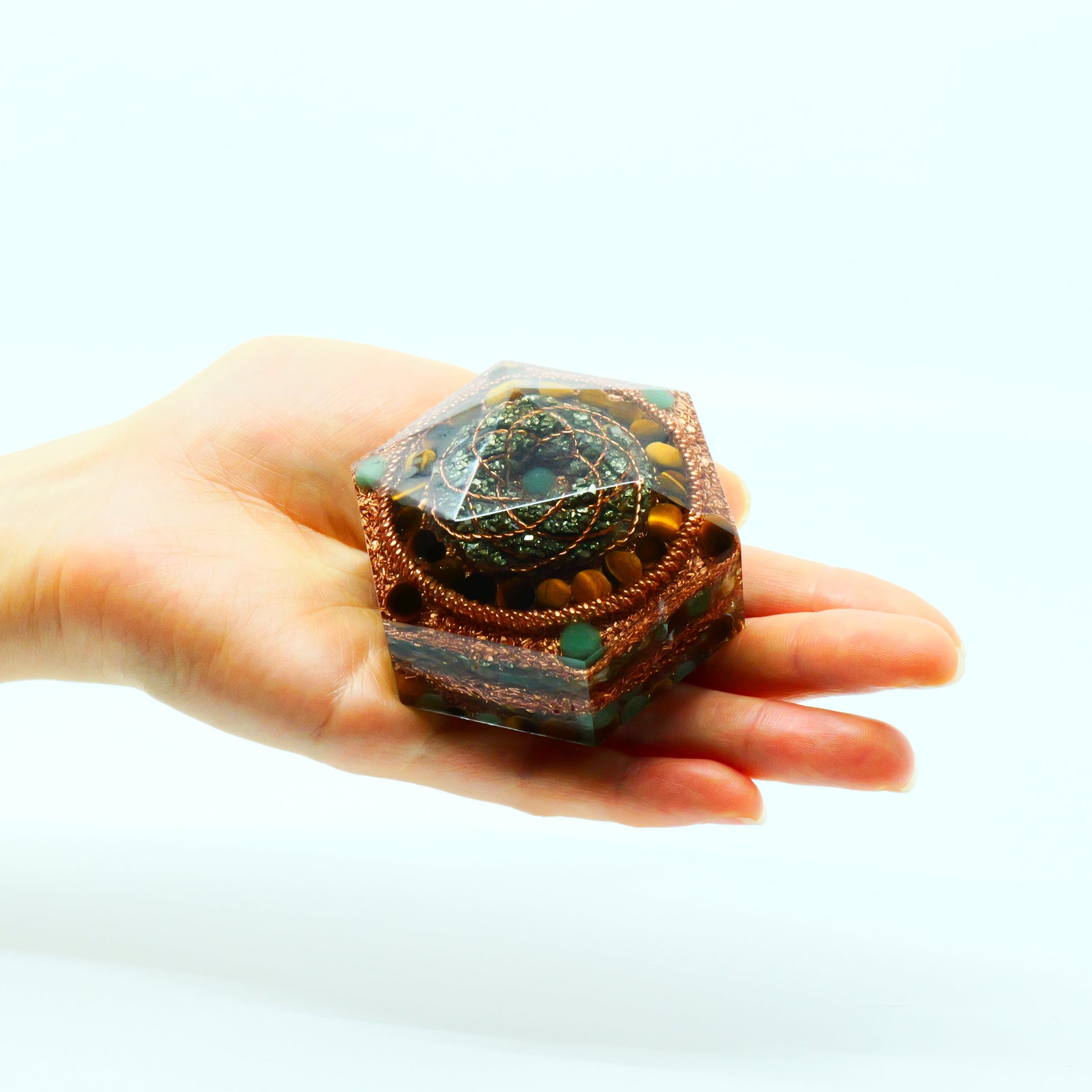 It looks truly beautiful — I can see the fine attention to detail that went into crafting this small orgonite. I keep it in my car, and it adds such a nice touch. I often hold it in my hands, and it feels wonderful. Exceptional craftsmanship.