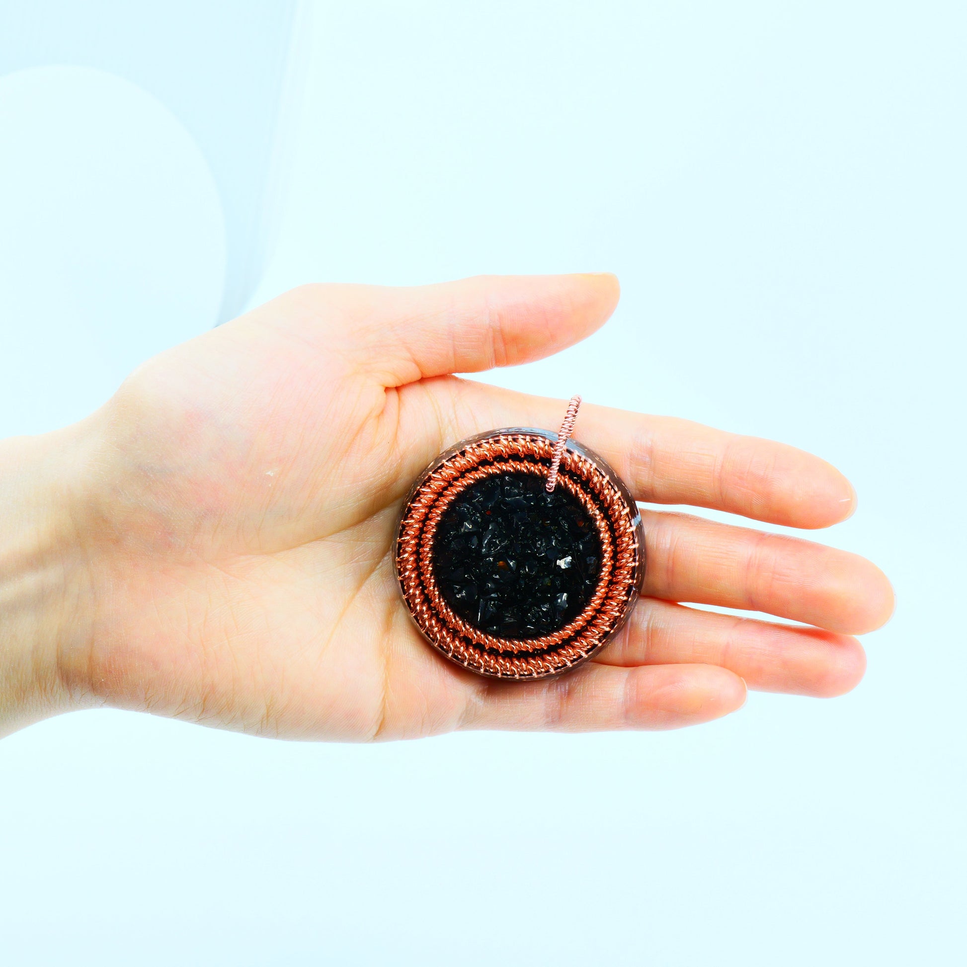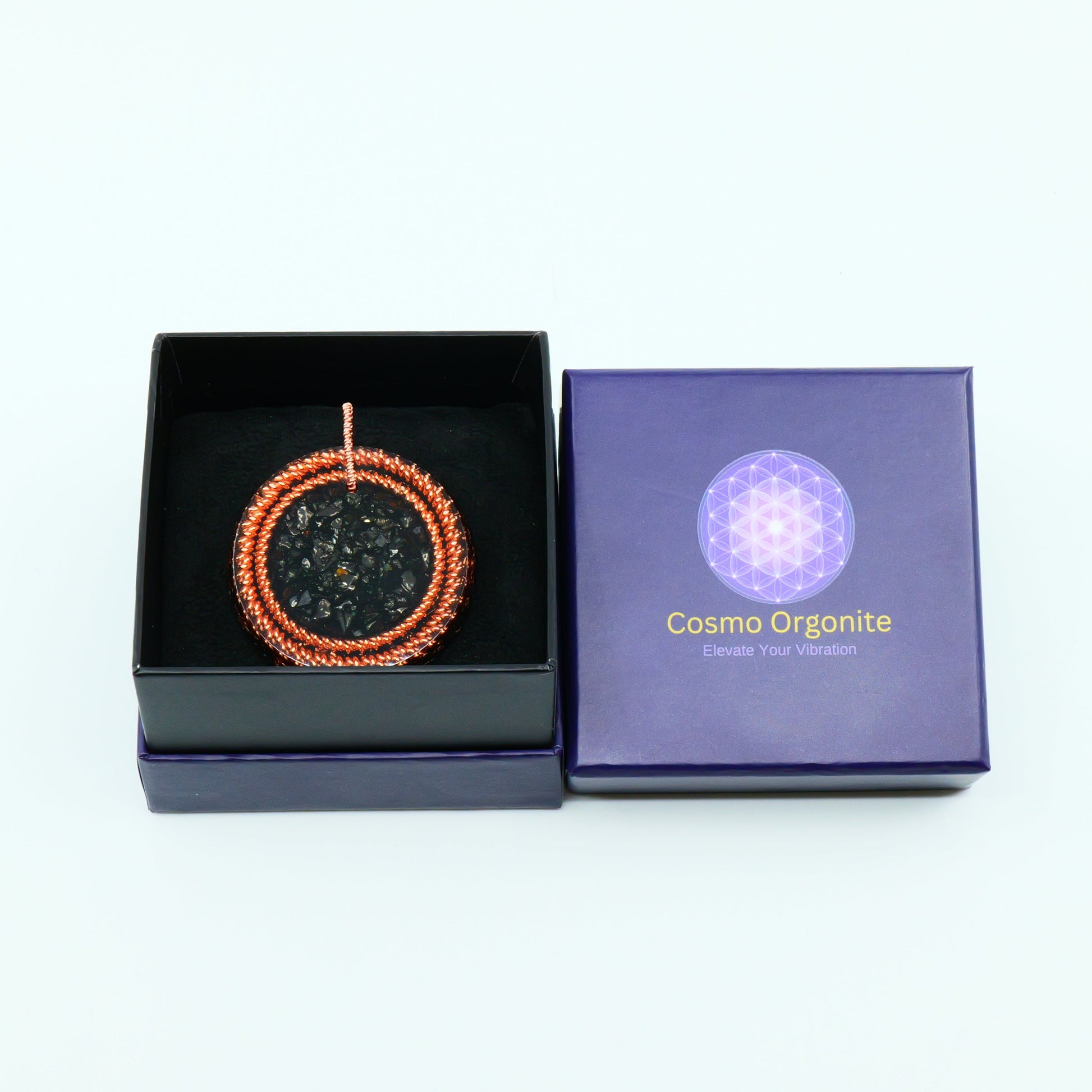 Each piece is one-of-a-kind, handmade by Cosmo Orgonite, and charged with protective intention.