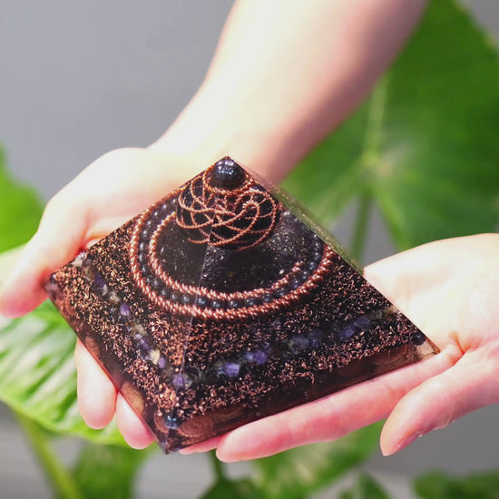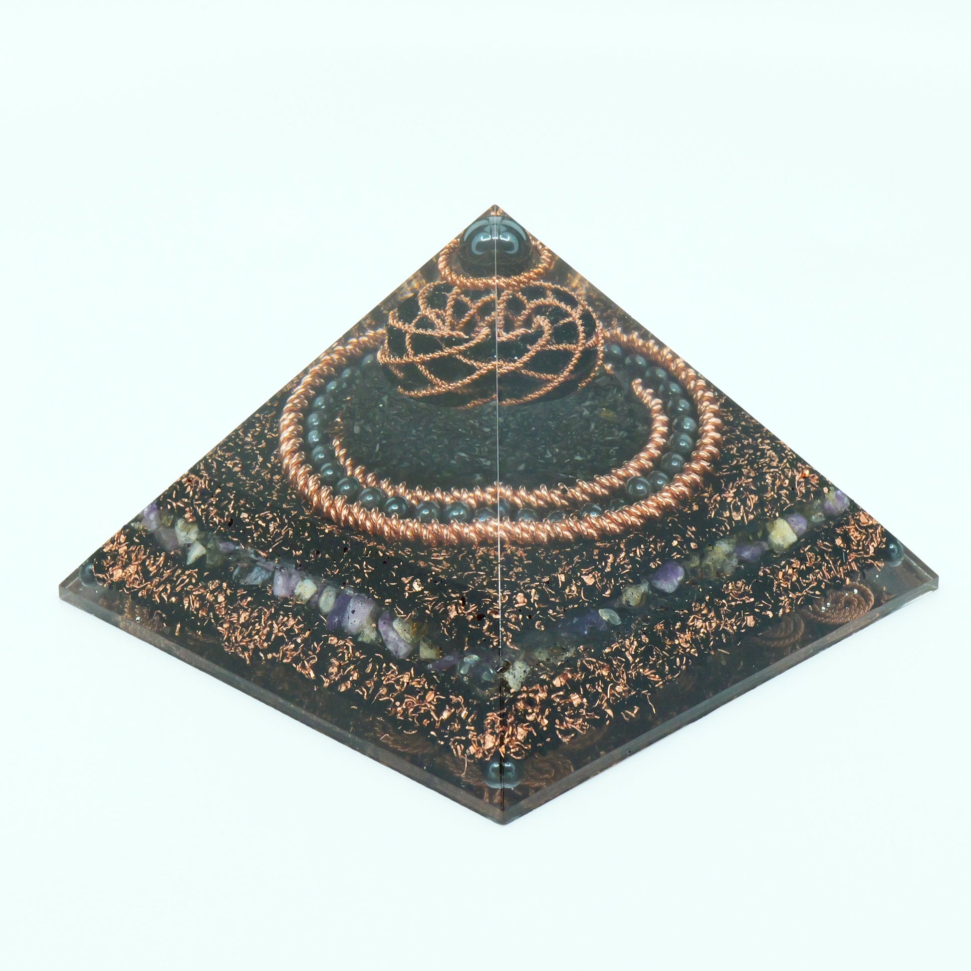 ✧ Sacred Geometry: Pyramid design, infused with 5 Double Tensor Triskelion coils (Royal Cubit) and 8 Double Tensor Rings for enhanced energetic flow