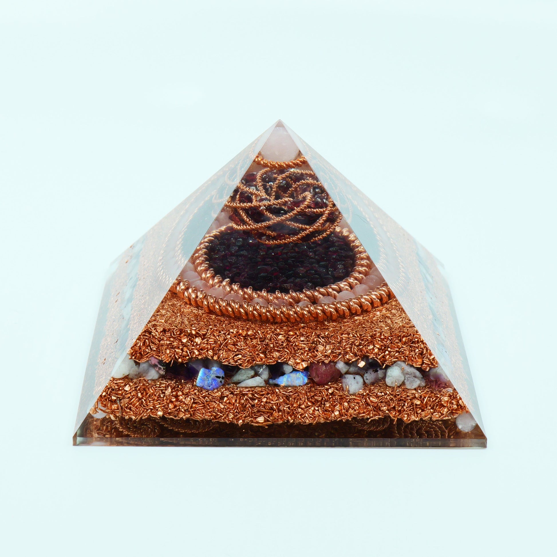 Handcrafted with care, this Pyramid — Garnet Rodin Coil is designed to open the heart, strengthen relationships, and radiate balanced loving energy through sacred geometry.