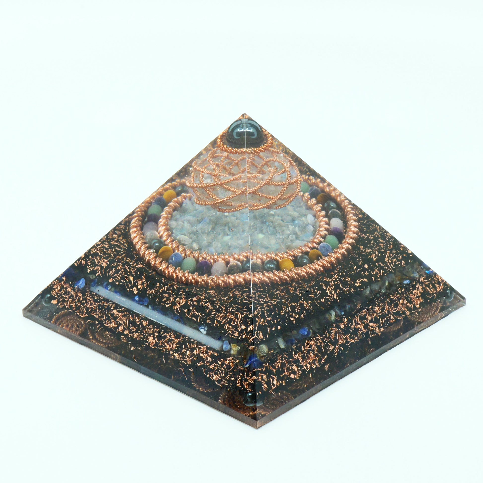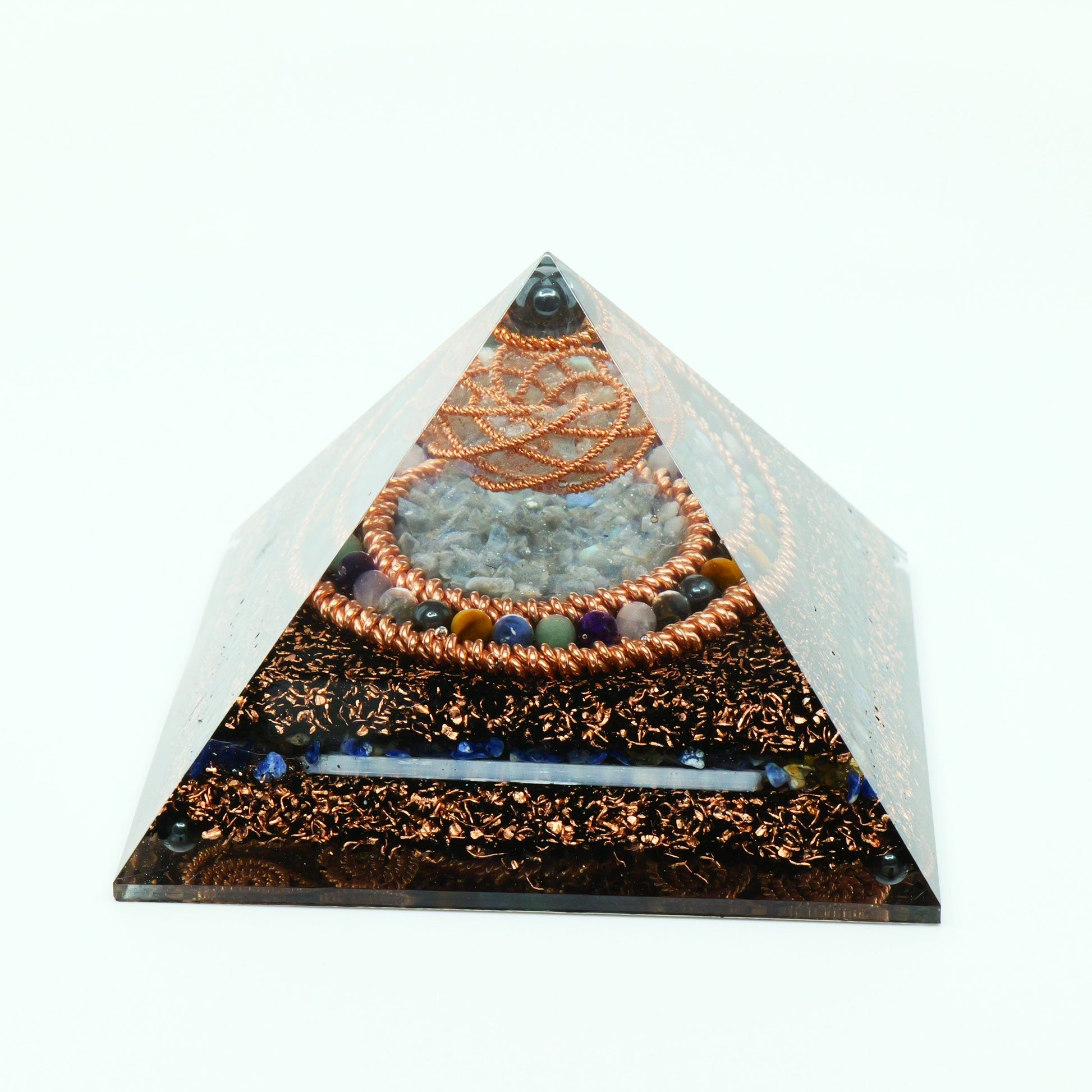 Handcrafted with care, this Pyramid — Labradorite Rodin Coil is designed to unify love, protection, spiritual growth, and prosperity in one powerful orgonite.
