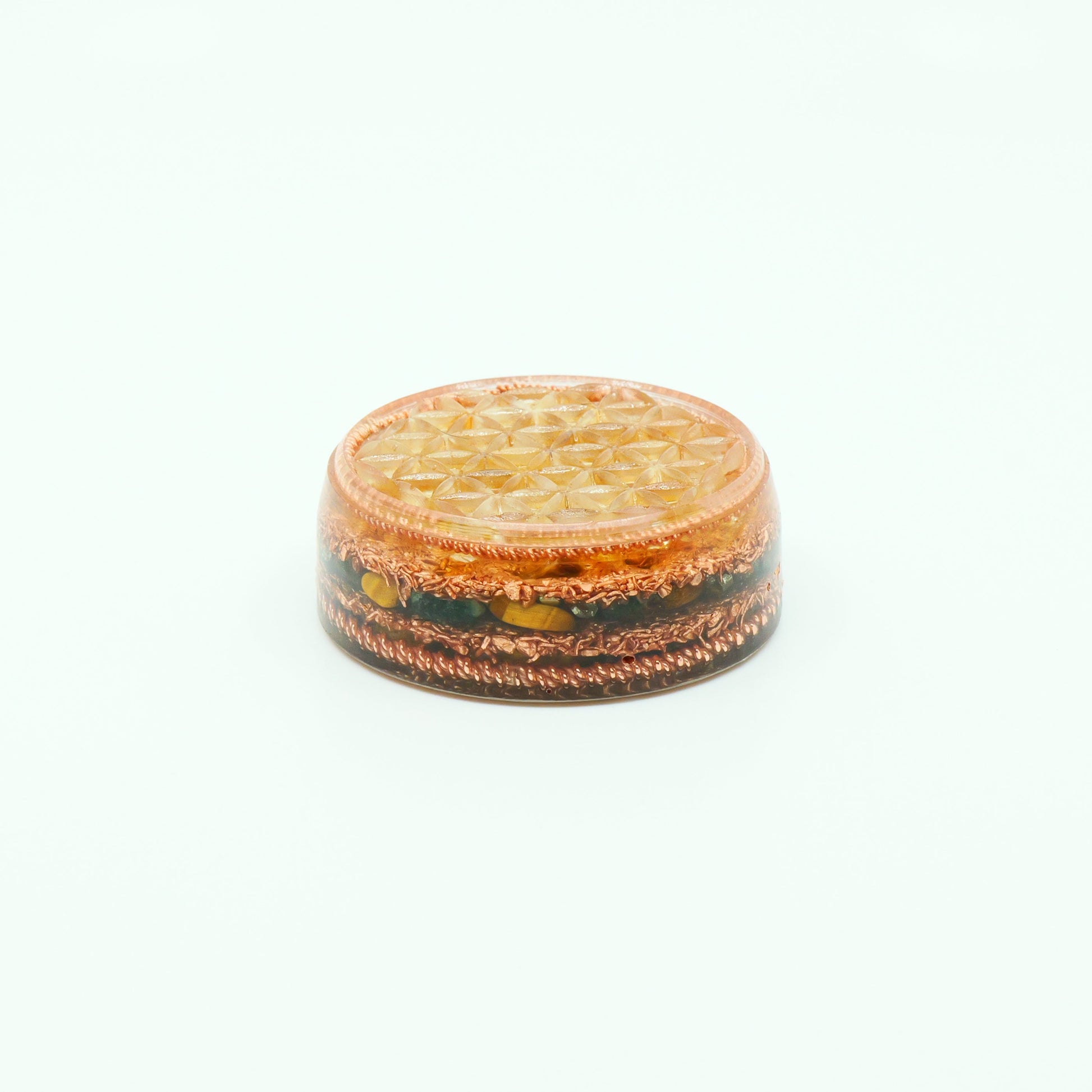 Handcrafted with care, this Wealth & Luck Orgonite — Flower of Life is designed to attract prosperity, opportunities, and abundance through sacred geometry.